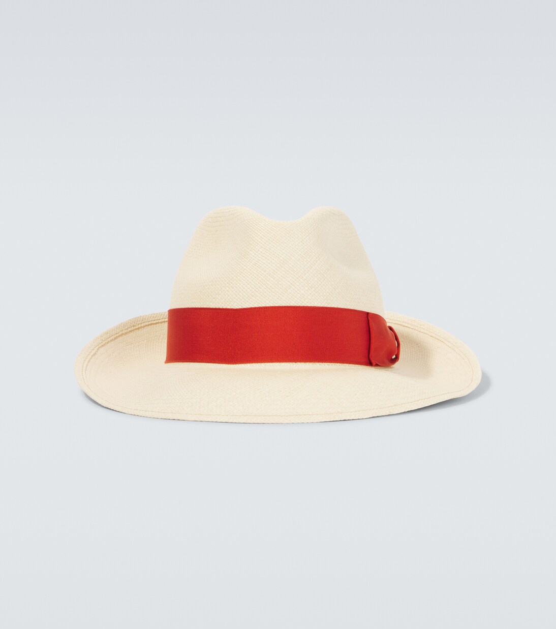 The legendary Panama hat was created in 1835. The Amedeo Panama Fine has a 6cm wide brim and 3cm grosgrain logo hatband. The production of Borsalino straw hats begins in Ecuador, where the local straw is harvested from the stalks of the toquilla palm tree. The lightweight, elastic, and durable material is then woven by hand, using only the finest and most precious quality straw. The hat is then sent to Italy where it is shaped and finished with the famous logo hatband.