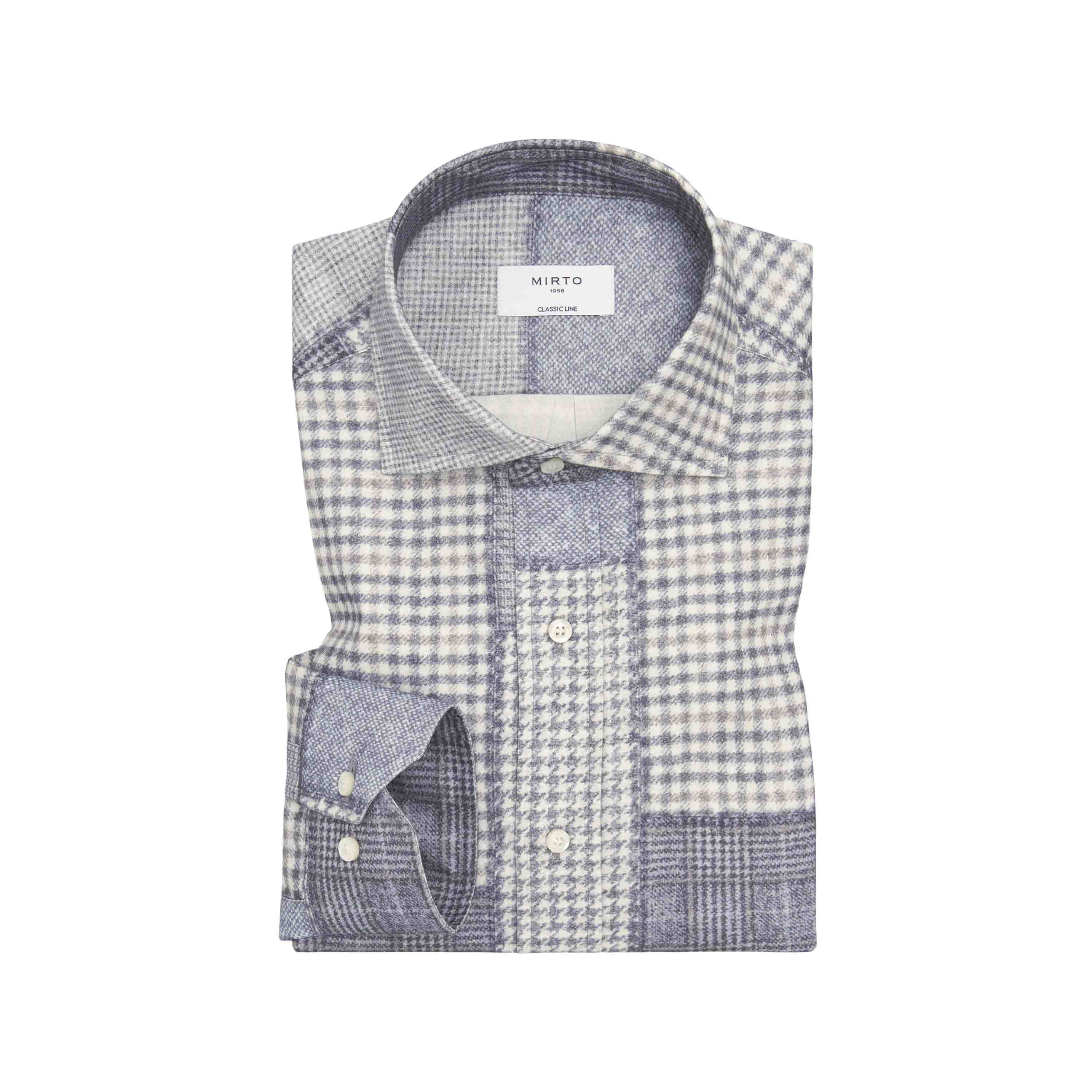 Casual patchwork print shirt in 100% cotton flannel. Spread collar with removable stays, no pocket, long sleeves, double-button cuffs, regular fit.