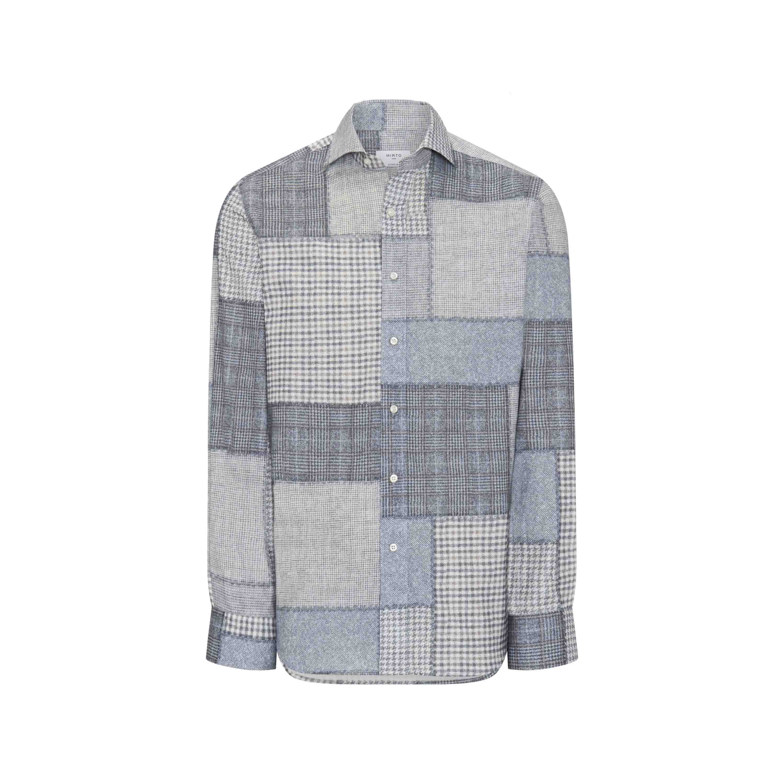 Mirto Blue & Gray Patchwork Print Cotton Shirt