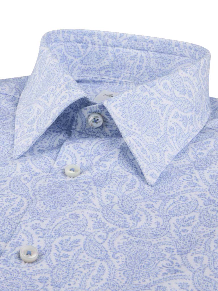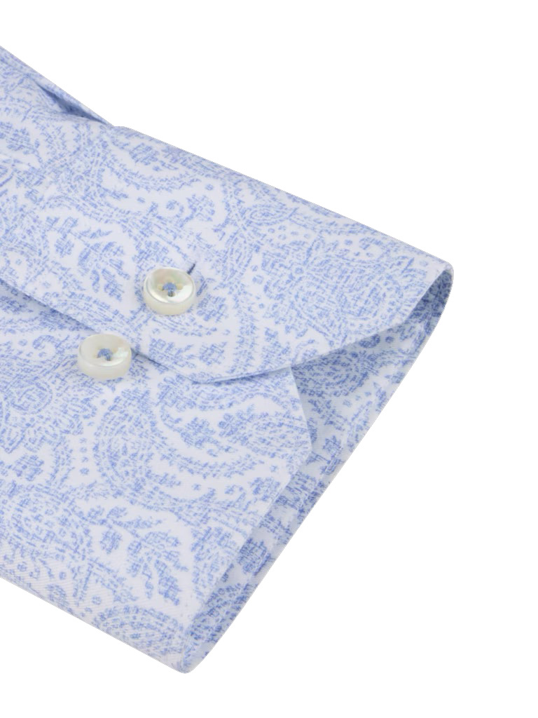 Stenstroms Light Blue Paisley Twill Cotton Shirt