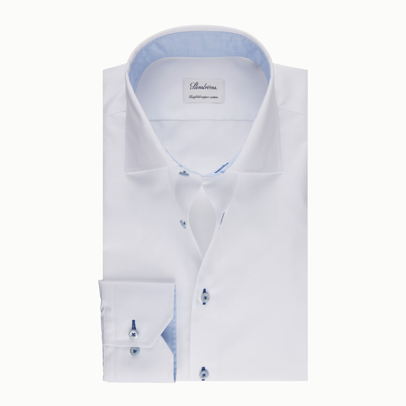 Stenstroms White Cotton Dress Shirt with Blue Trim